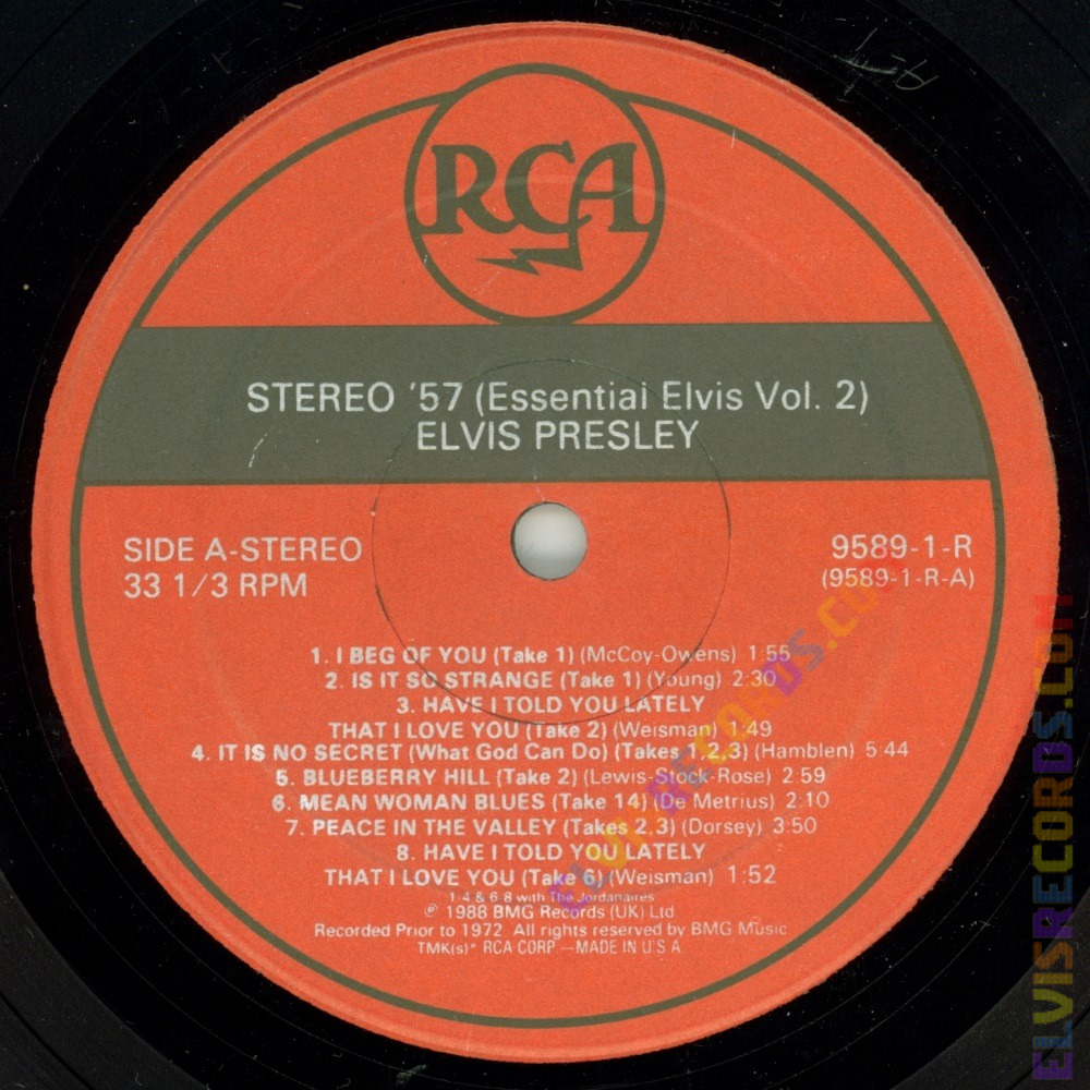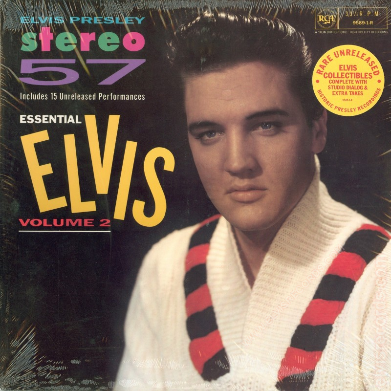 Sticker: Yellow with red text. Reads Rare Unreleased. Historic Presley Recordings. Elvis Collectibles Complete With Studio Dialog & Extra Takes. 9589-1-R.