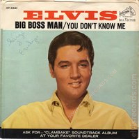 Cover: picture sleeve front and back. Ask For on Big Boss Man side, Coming Soon on You Don’t Know Me. Sleeve is slightly different where there is a tabbed top just above ELVIS on the You Don’t Know Me side.