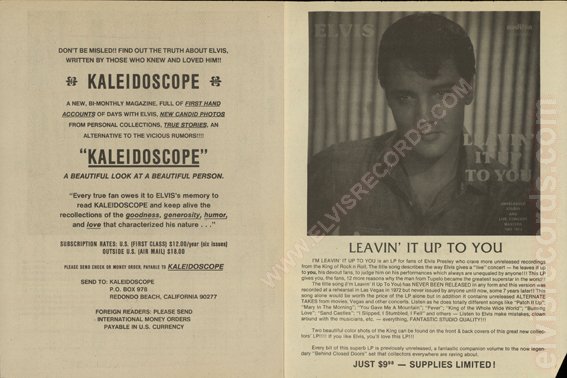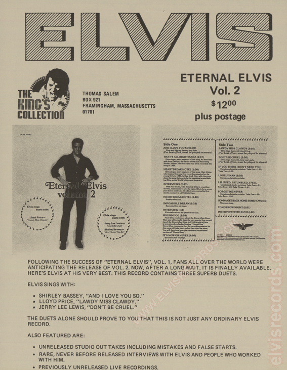 Much like any release, bootlegs and unauthorized Elvis releases needed advertisements too. This is a gallery of advertisements from the collection of Felix Gübeli, editor of Bootleg Elvis (2012).