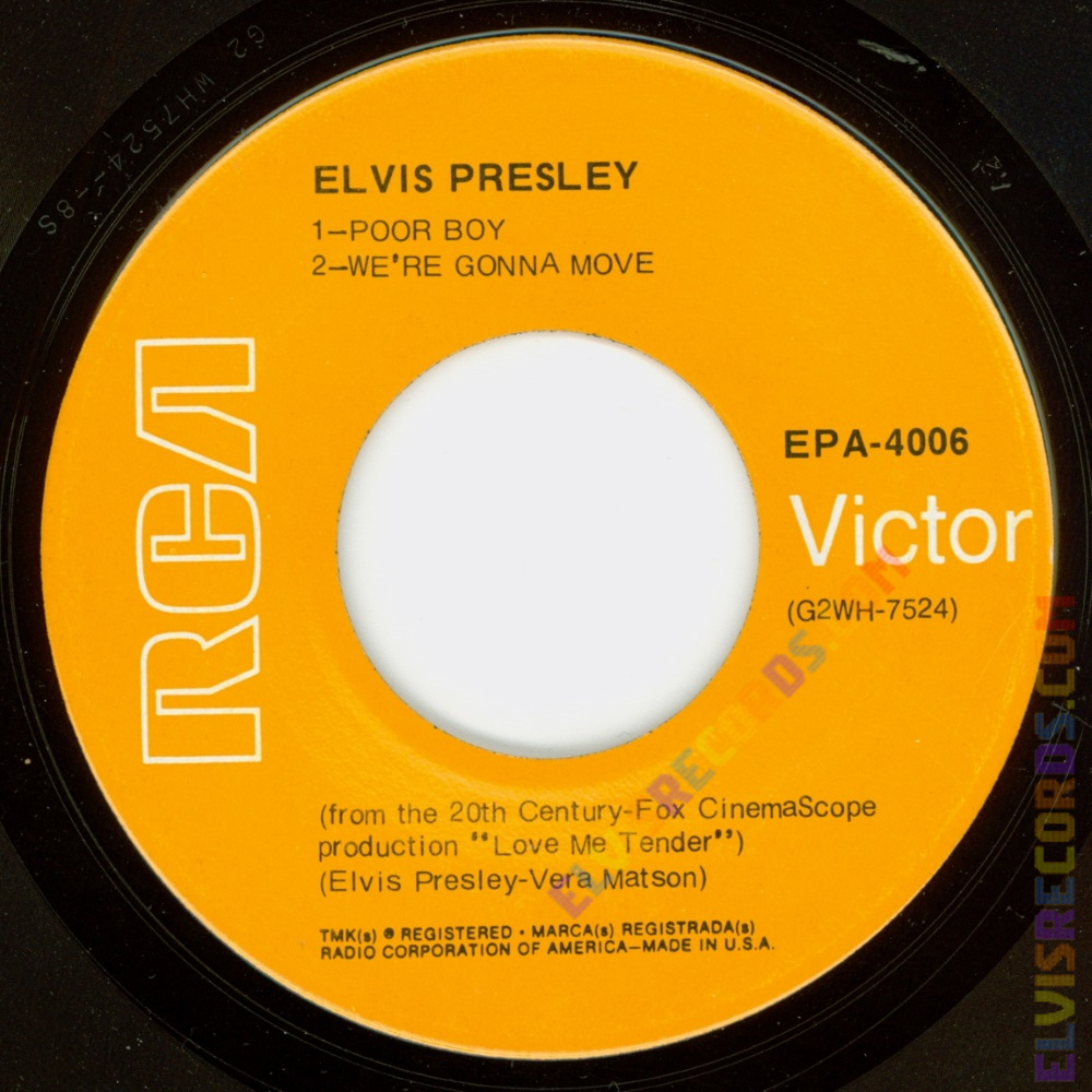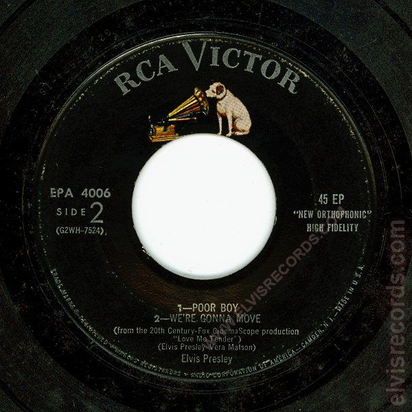 Disc: (11/1956) Black label, dog on top without horizontal line. ELVIS PRESLEY in all caps.