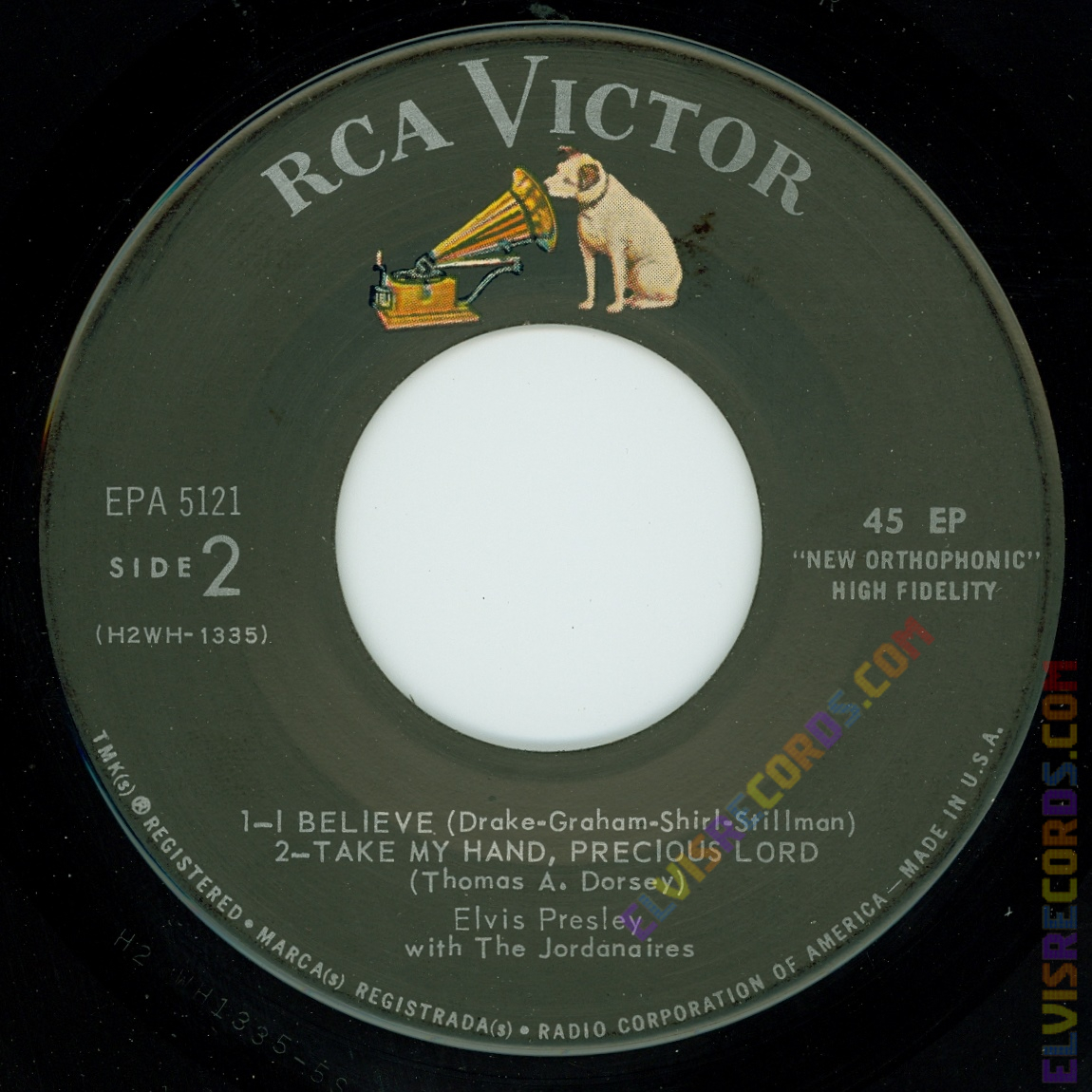 Disc: (11/1959) Black label, dog on top. Straight 1 for Side 1. With Elvis Presley in large font on Side 2.2