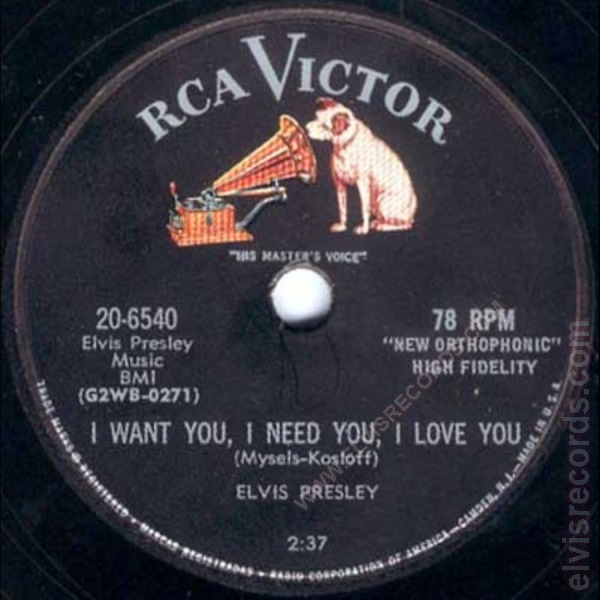 Release: RCA Victor 20-6540 I Wan't You, I Need You, I Love You / My Baby Left Me (78)