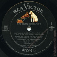 Also released in stereo as LSP-2765 Elvis' Golden Records, Volume 3.