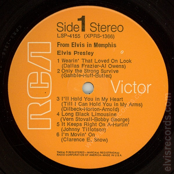 Disc: 1976. Black label, dog near top. With Elvis Presley under From Elvis in Memphis.