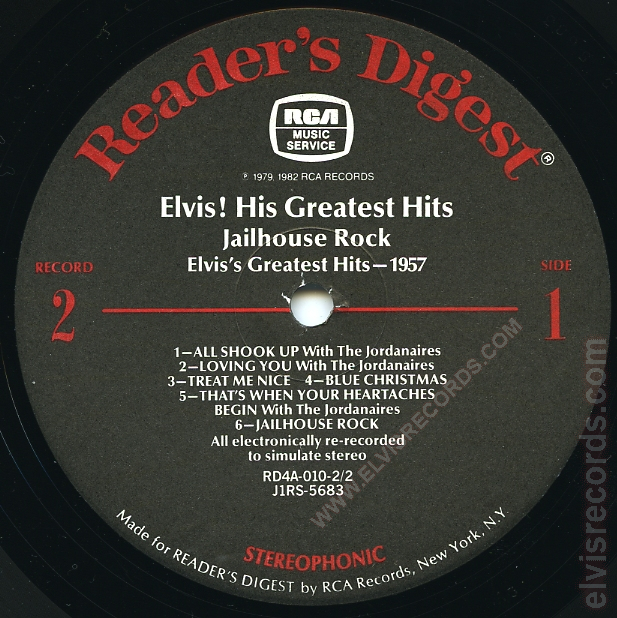 Originally released as RD4A-010 Elvis! His Greatest Hits