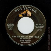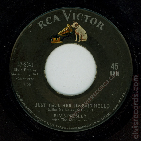 Disc: (7/1963) Black label, dog on top. 45 RPM on two lines. On the JUST TELL HER JIM SAID HELLO side, no Producer Steve Sholes.