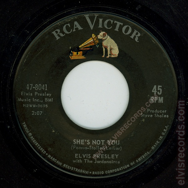 Release: RCA Victor 47-8041 She's Not You / Just Tell Her Jim Said Hello (45)
