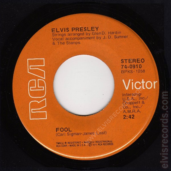 RCA’s listing notice for this release7 has Gladys Music, Inc., / INTERSONG-U.S.A., INC. / ASCAP as the publisher for FOOL; however, a hand written correction made modifications to appear as Gladys Music, Inc. / INTERSONG-U.S.A., INC., ASCAP CHAPPELL & Co., Inc. / A.M.R.A. thus making this label the corrected label. Of the labels for this release, this is the most difficult to find.